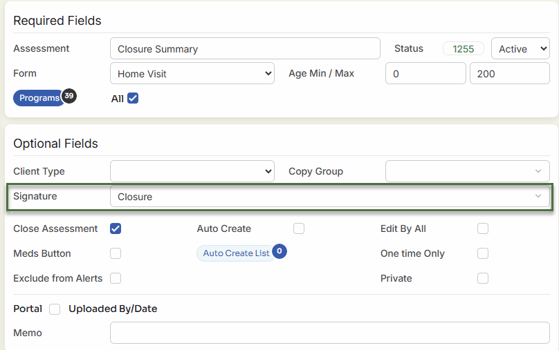 2. That Signature Type is defined under Setup > Program Values > Assessment Signature.