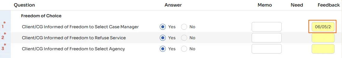 - The feedback is displayed in the yellow feedback memo on the client’s assessment.